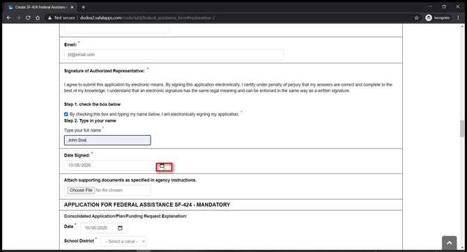 Step 2: Type your full legal name, and date your signature using the calendar picker.