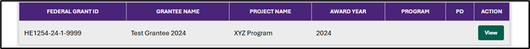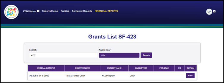 - Select the View button to access all SF-428 Reports for the selected grantee and grant year.