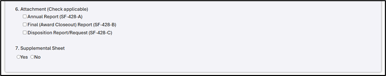 6-7. Attachment and Supplement Sheet: Select the descriptors that best describe the attachment you are uploading.